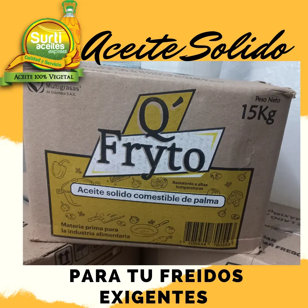 Nuestros aceites Solidos vegetal, 100% aceite de Palma, se caracteriza por su gran estabilidad y su resistencia a las elevadas temperaturas 230°C, (440°F) utilizado en Cocinas, Panaderia y Reposterias.,especial para freidos profundos proporcionando un excelente rendimiento sin que el producto final ...